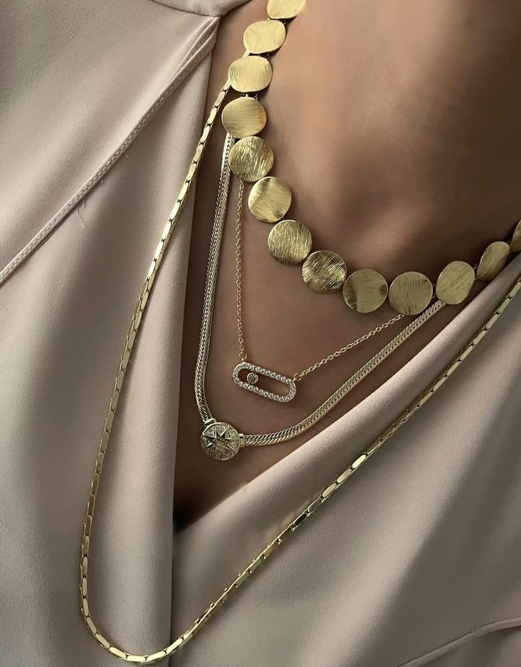 Zincir detaylı, yılan desenli uzun altın kolye, günlük kullanıma uygun çağdaş ve gösterişli bir tarza sahiptir.