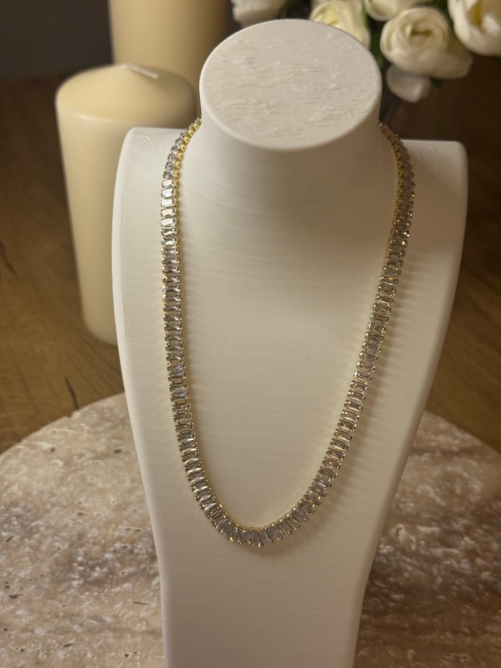 Bu uzun altın kolye, suyolu baget taşlı günlük ve gece için uygun çağdaş ve klasik şıklığı bir araya getiriyor. Vip çelik, kararma yapmaz, antialerjendir ✨