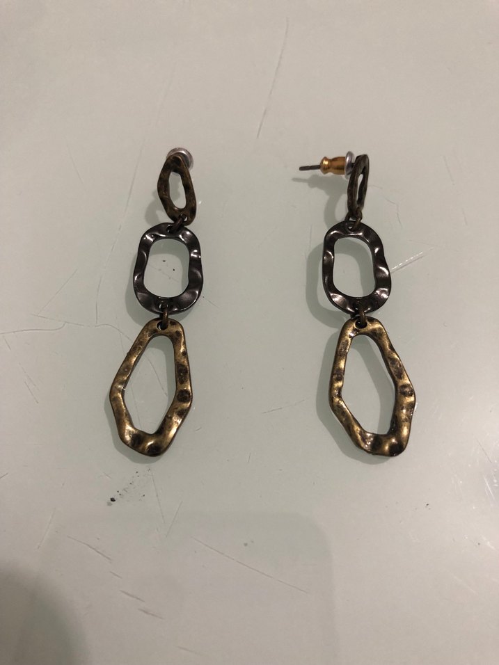 Zincir detaylı, koyu altın renkli ve yılan desenli uzun kadın küpeleri, minimalist ve avangart tarzıyla romantik akşamlar için uygundur.