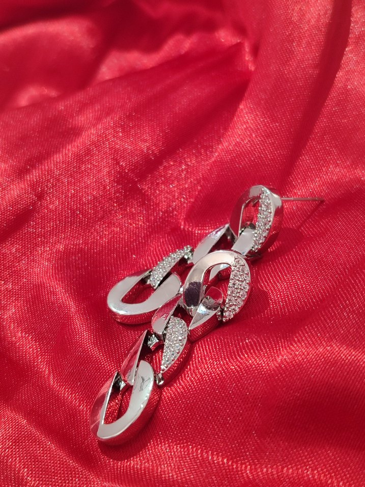 Romantik buluşmalar için zincir detaylı, yılan desenli uzun kadın küpesi, gösterişli ve şık tarzlar için uygun.