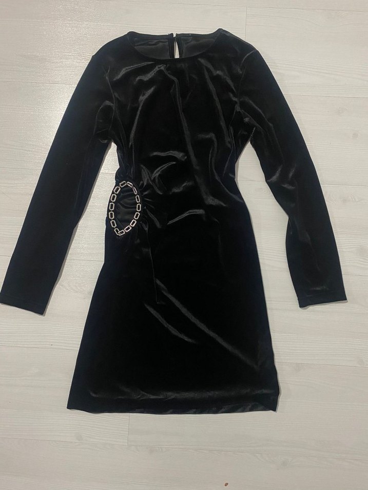 Zincir Detaylı Uzun Kollu Siyah Gotik Elbise