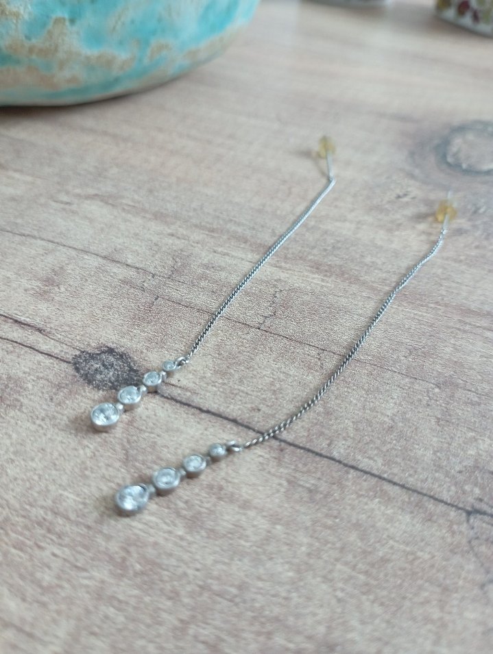 Minimalist tasarımlı, zincir detaylı uzun küpeler. Bej tonlarda işleme detayları bulunur. Günlük kullanıma uygun klasik şıklık sunar.