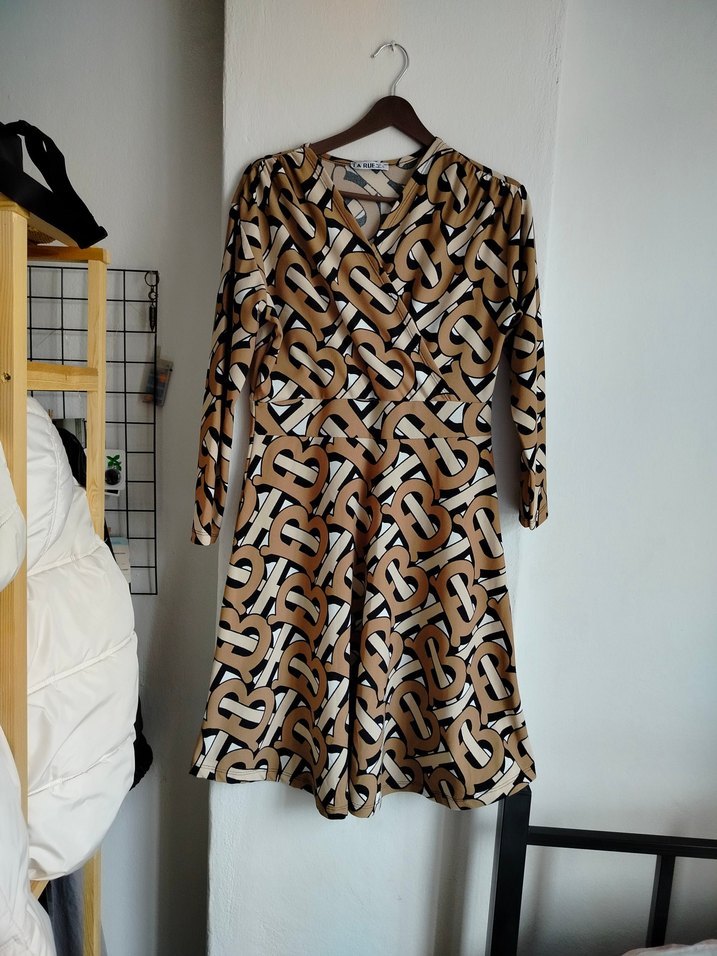 Renkli yılan desenli, zincir detaylı uzun triko elbise. V yaka ve askılı kollu, bol kesim ile bohem tarzda günlük kullanıma uygun.