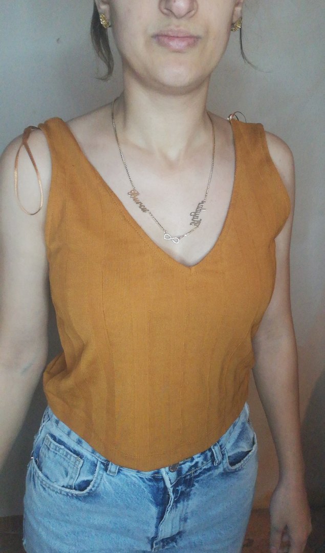 Zincir Detaylı V Yaka Keten Kadın Atlet