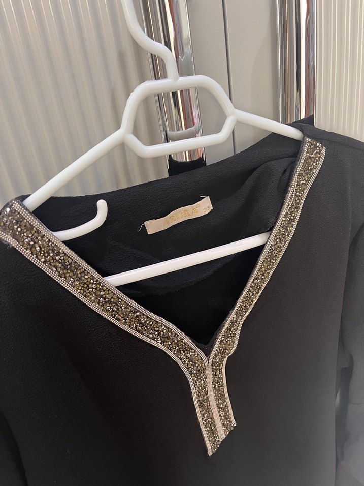 Zincir detaylı V yakalı, işlemeli siyah uzun elbise. Askılı kollu ve regular fit, minimal ve klasik şıklığı bir arada sunar. Günlük kullanıma uygun, koyu tonlarda.