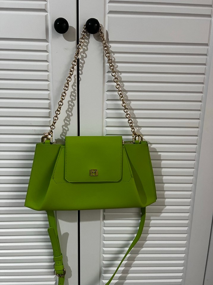 Parlak yeşil deri çanta, zincir detaylı ve yılan derisi desenli. Modern klasik ve minimalist şıklığı bir araya getirir. Günlük kullanım için uygun. Ürün hiç kullanılmamıştır etiketlidir