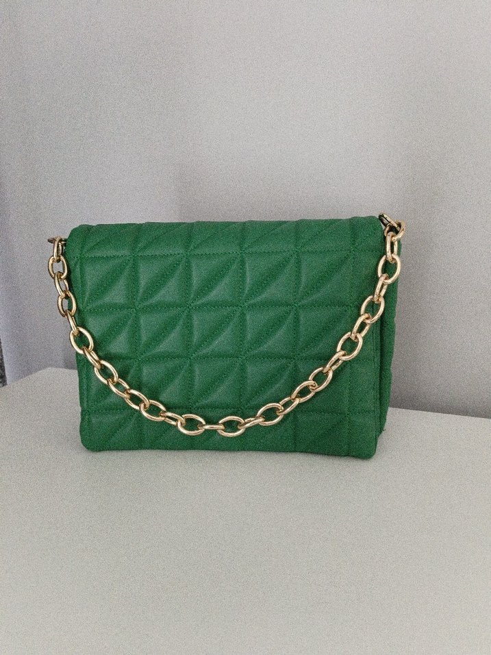 Zincir Detaylı Yeşil Deri Kadın Çanta