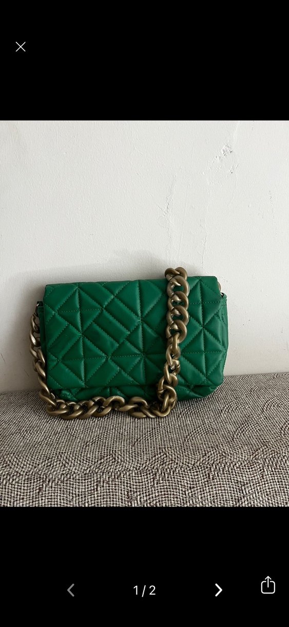 Zincir Detaylı Yeşil Deri Kadın Çanta