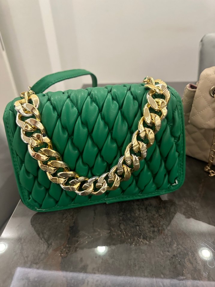 Zincir Detaylı Yeşil Deri Kadın Çanta
