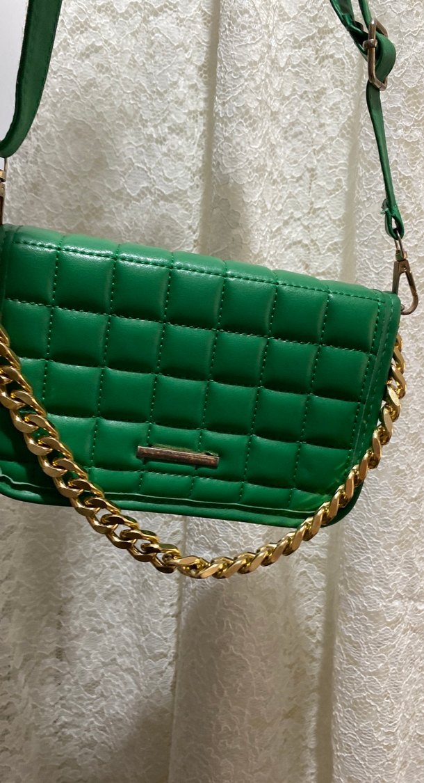 Zincir Detaylı Yeşil Deri Kadın Çanta