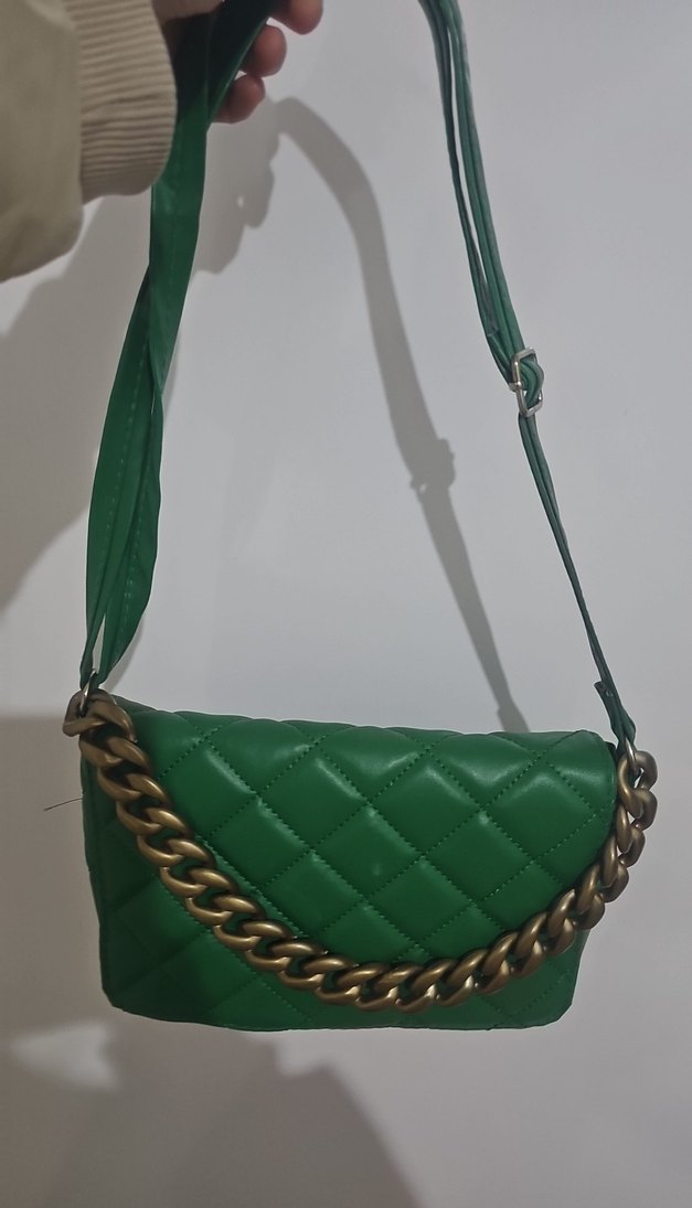 Zincir Detaylı Yeşil Deri Kadın Çanta