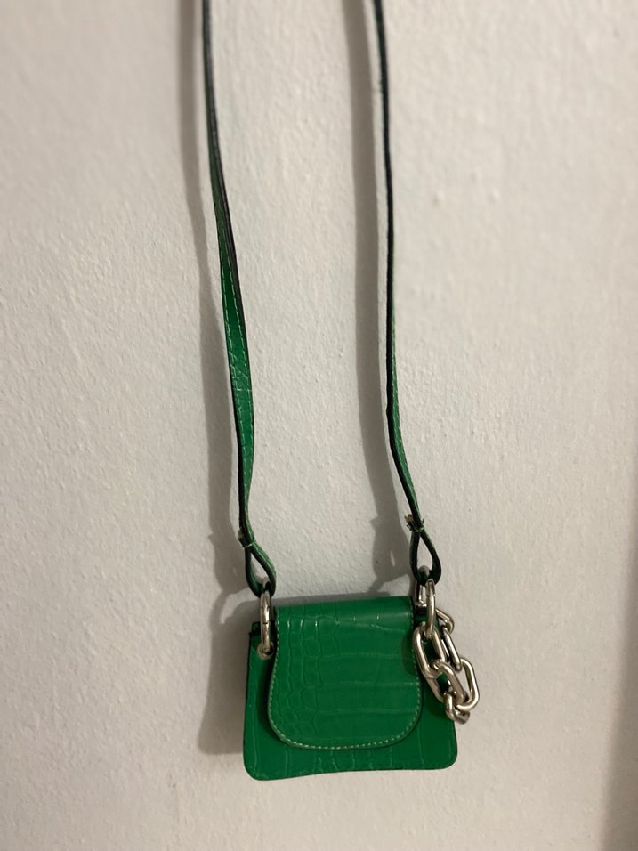 Zincir Detaylı Yeşil Deri Kadın Çanta
