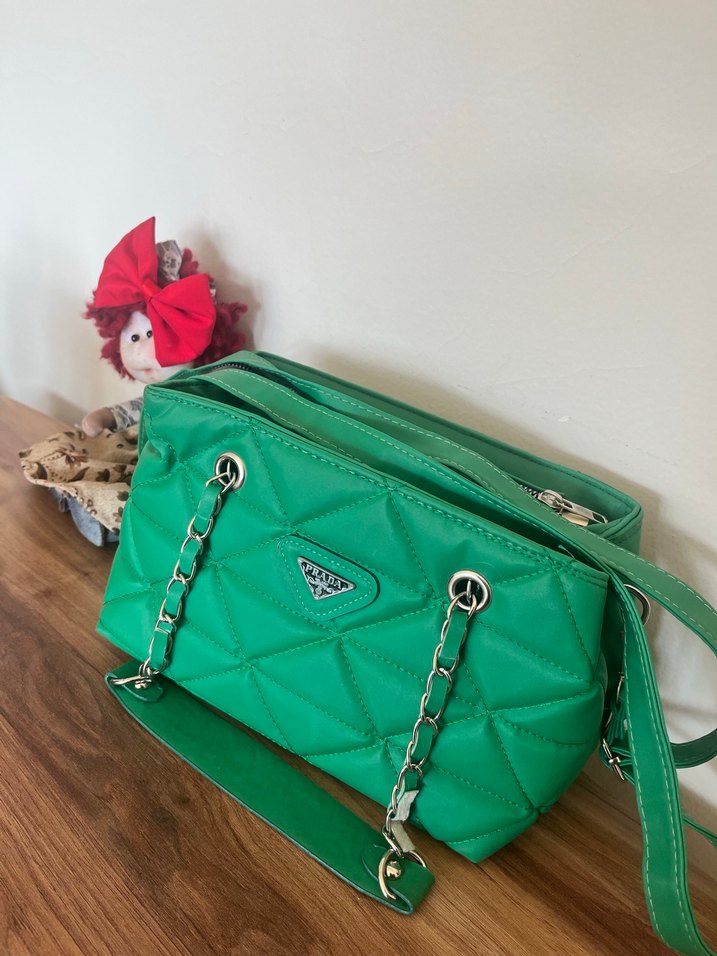 Zincir Detaylı Yeşil Deri Kadın Çanta Prada