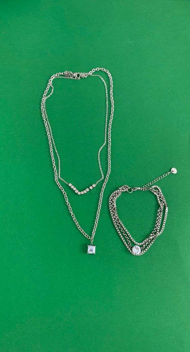 Zincir Detaylı Yeşil Midi Kolye ve bileklik takım