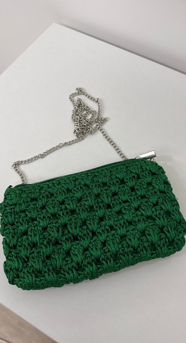Zincir Detaylı Yeşil Örgü Kadın Çanta