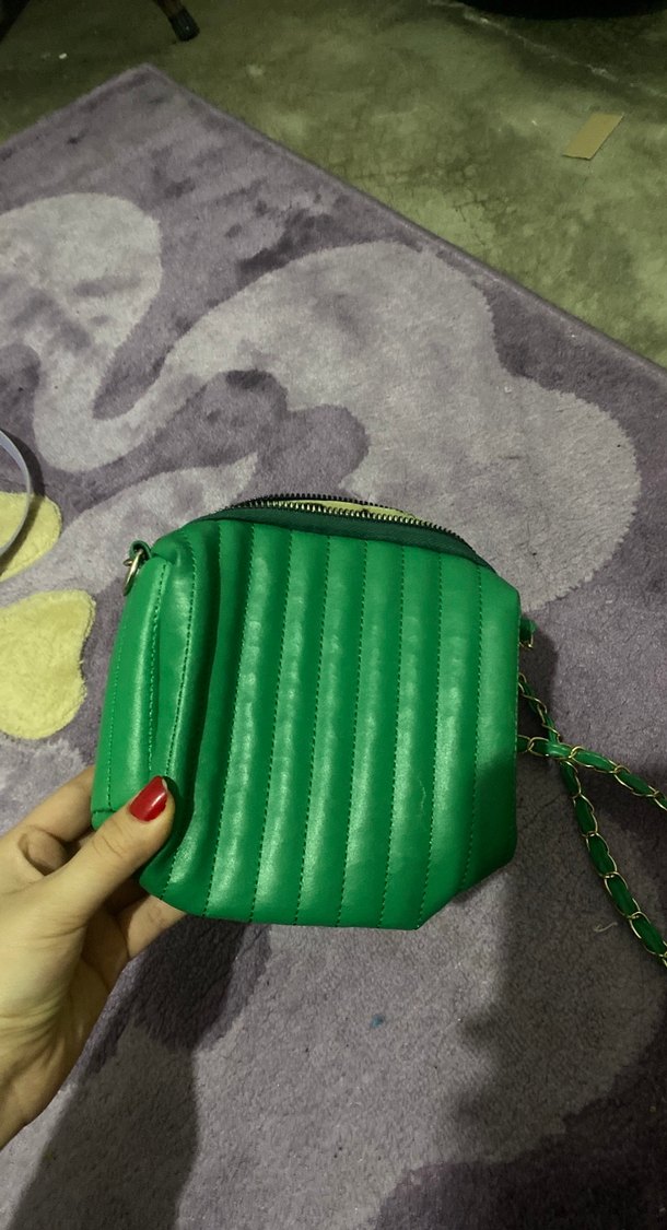 Zincir detaylı, yılan desenli yeşil kadın çantası. Sentetik kumaştan, bohem ve retro tarzlara uygun, günlük kullanıma ideal.