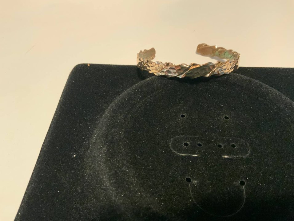 Zincir detaylı, yılan desenli koyu tonlu altın bilezik. Minimalist ve avangart tarzlara uygun, romantik akşamlar için ideal.