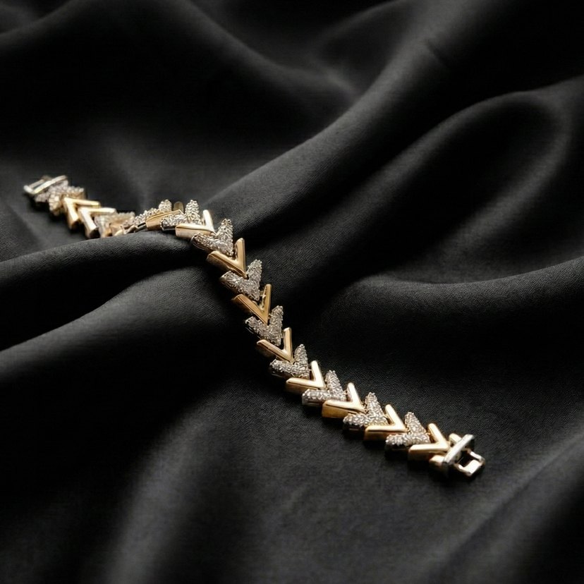Zincir detaylı ve yılan desenli altın bileklik, çağdaş ve klasik şıklığı günlük kullanıma uygun şekilde sunar.