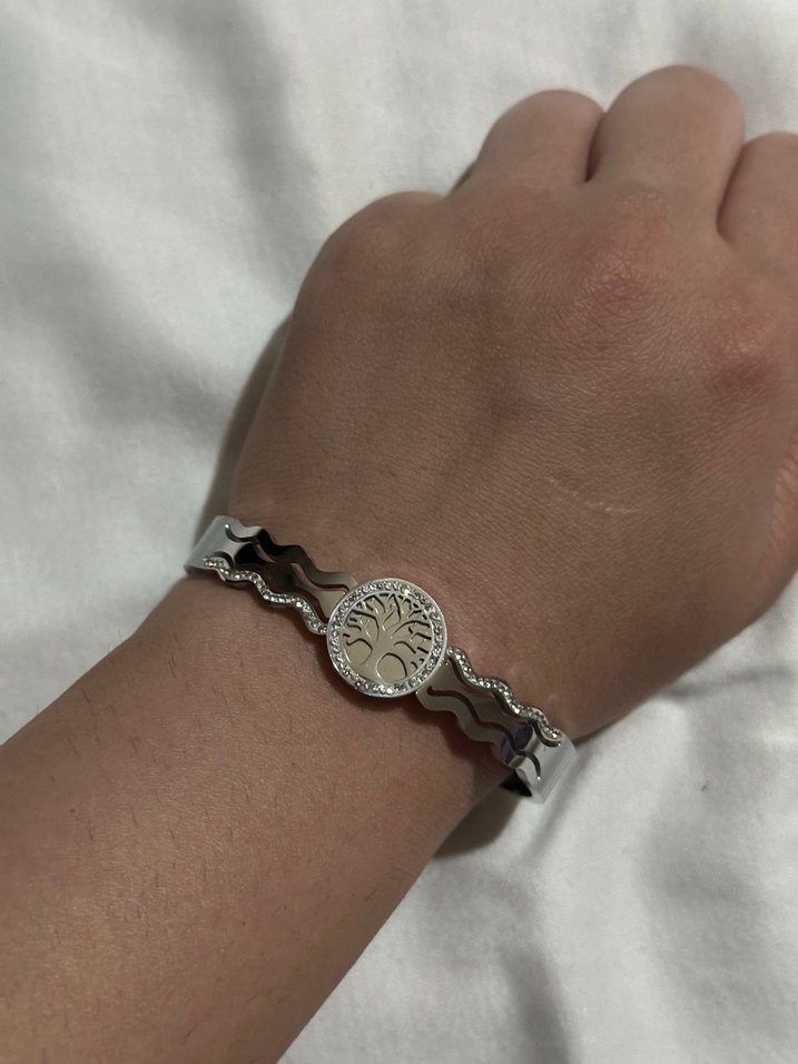 Zincir Detaylı Yılan Desenli Gri Bileklik
