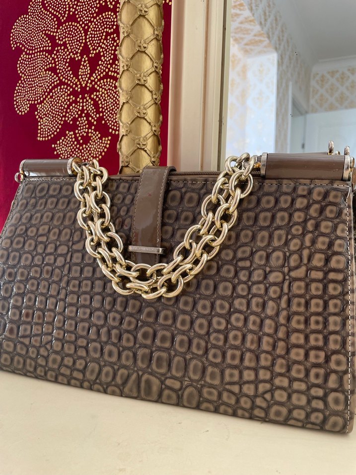 Zincir Detaylı Yılan Desenli Kadın El Çantası