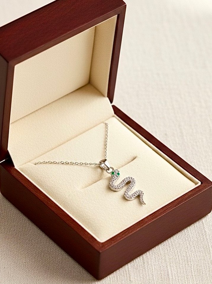 Zincir Detaylı Yılan Desenli Midi Kolye