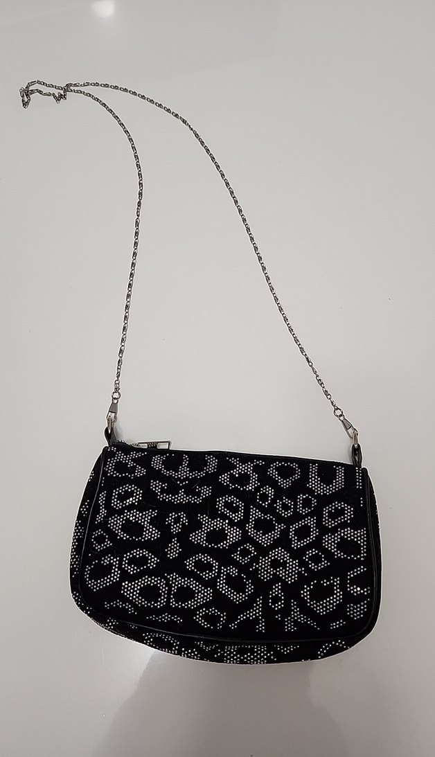 Zincir detaylı ve yılan desenli siyah kadın çantası. Sentetik kumaştan yapılmış, günlük kullanıma uygun şık ve gotik tarza sahip.. askıları çıkarılıp farklı şekillerde kullanılmaya uygun.