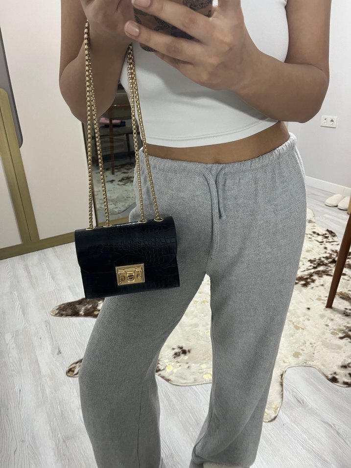 Zincir Detaylı Yılan Desenli Süet Kadın Çanta