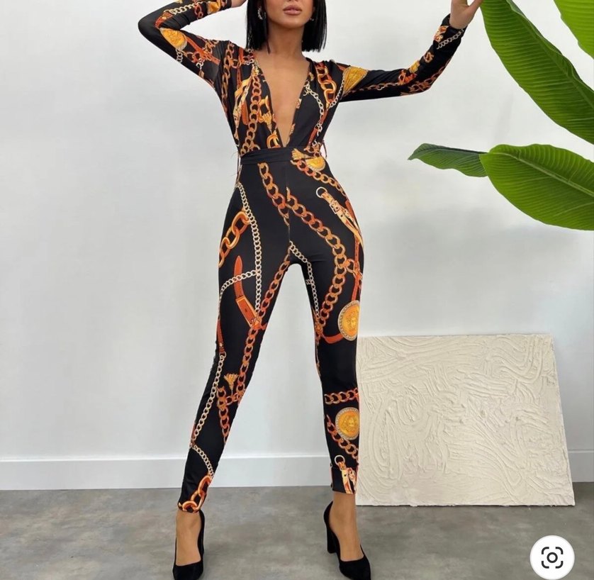 Zincir Detaylı Yılan Desenli Uzun Tulum