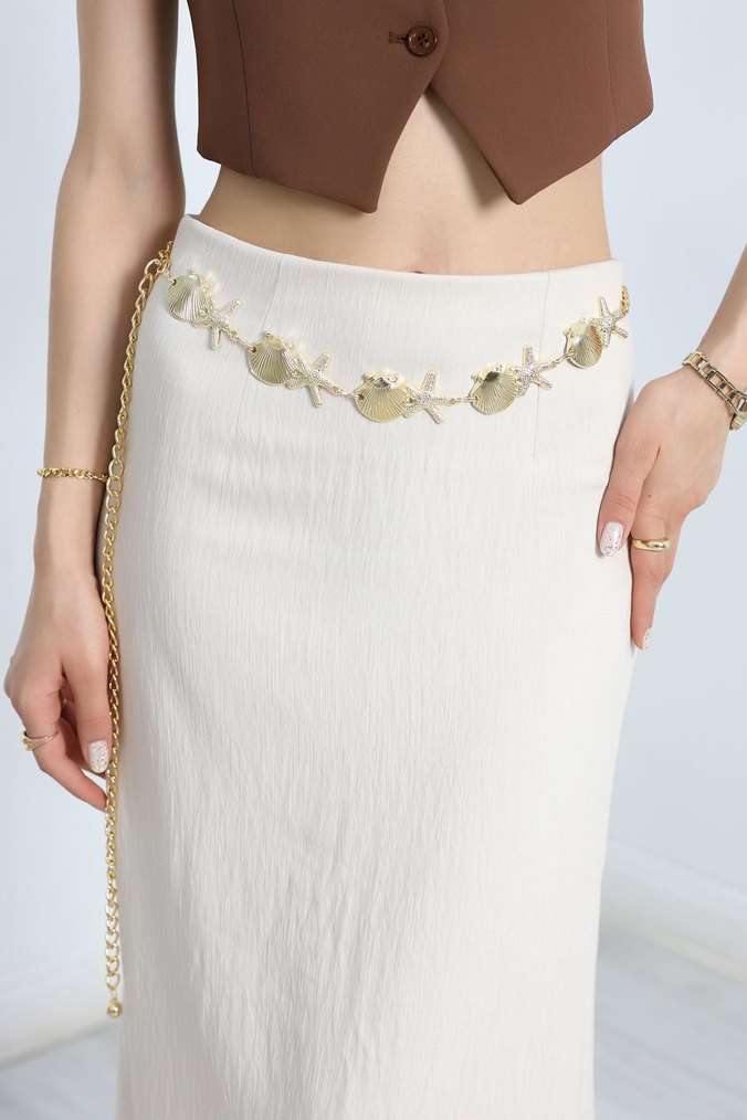 İpek dokulu beyaz kadın kemeri, zincir detayları ve dekoratif süslemeleriyle bohem tarzına uygun. ✨ yazın almıştım ve hiç giymedim yazdan beridir kararma falan yapmadı olduğu gibi duruyor