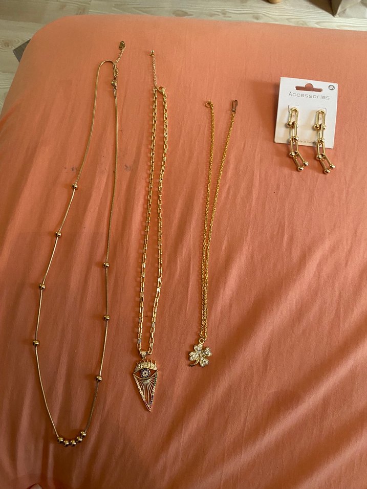 Zincir detaylı uzun altın kolyeler, minimalist bohem tarzıyla. Uyumlu zincir küpe setiyle birlikte. Günlük kullanıma uygun. ✨