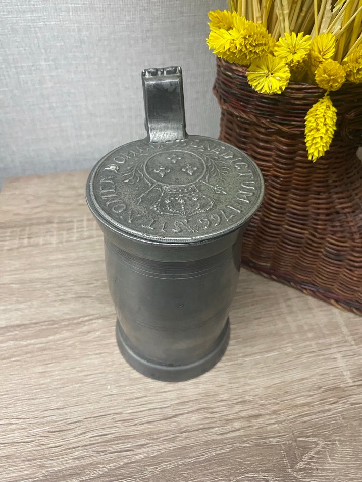 16,5 cm boyunda , Zinn malzemeden yapılmış , kurşun gibi ağır , yaklaşık 1 kg ağırlığında. Üretici damgası yok , Kapak üzerindeki tarih ve motif çok aykırı . Fransız kraliyet simgeleri olarak düşünüyorum . Kapak açma kulbu Aslan ayağı motifi .