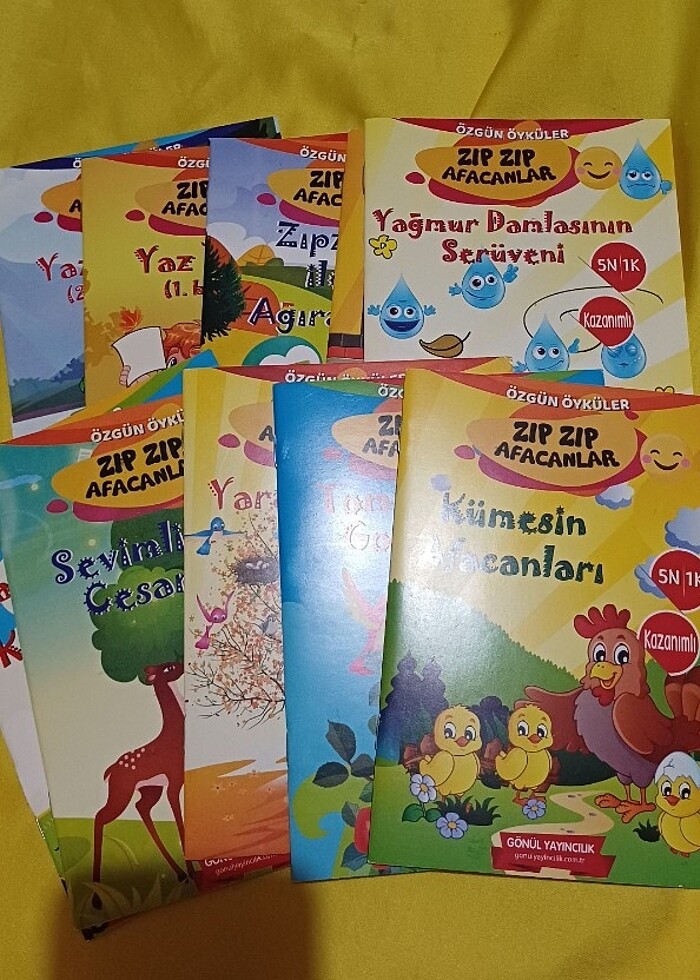Son fiyatıdır İndirim mesajı gönderip zaman almayınız Aynı soruları tekrar sormayınız 10 adet kitap Herbiri 32 sayfa Kitap arkasındaki etkinlikler işaretli değil. Eksik yırtık sayfa yok Sorunsuz ilkokul birinci sınıf seviyesi.