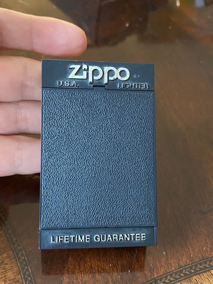Siyah renkte, dokulu yüzeye sahip Zippo vintage erkek rozeti, Zippo logosu ve 'LIFETIME GUARANTEE' yazısı ile dayanıklılığı ve klasik tarzı simgeliyor.