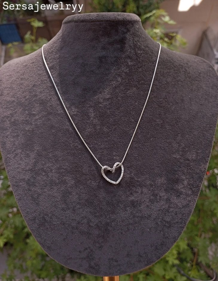 Zirkon taş detaylı düğüm kalp kolye