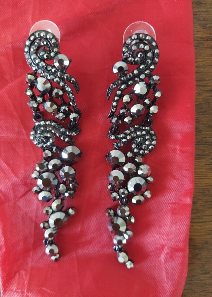 Uzun şık abiye küpe. Özel bir günde 1 kez kullanıldı. 8 cm uzunluğunda.