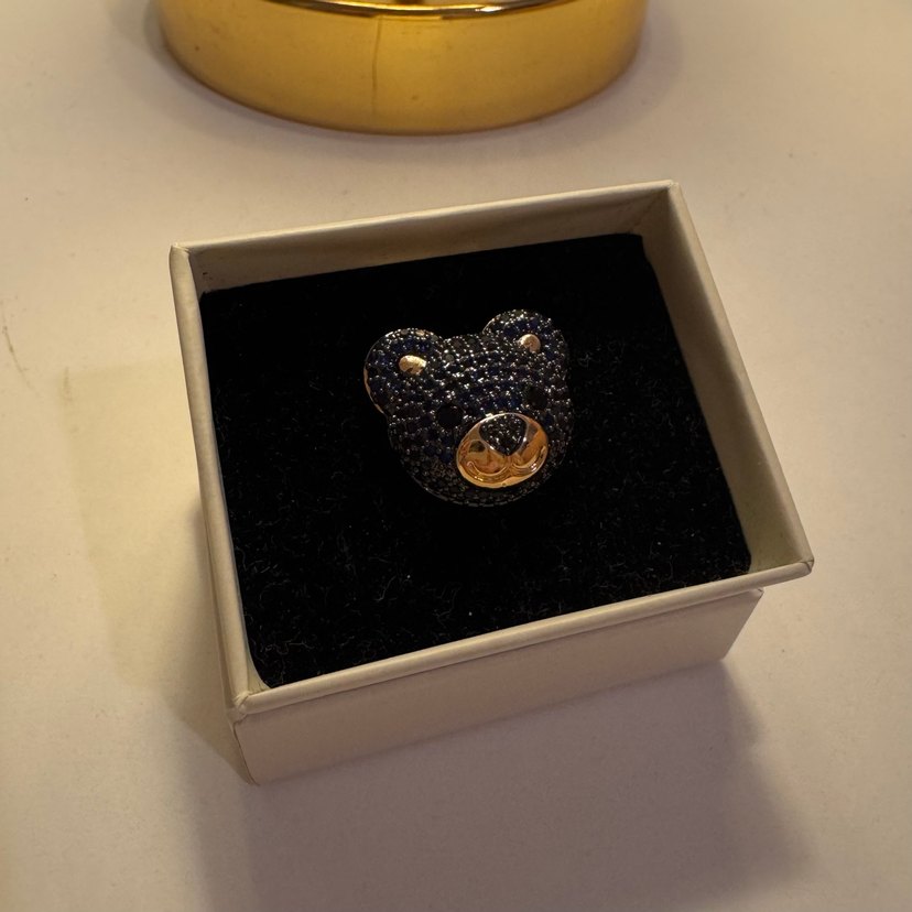 Rose gold renginde, lacivert zirkon, ayı figürlü kadın yüzüğü. Kullanilmadi
