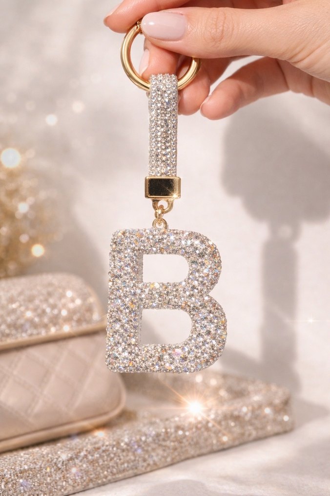 Zirkon Taşlı B Harfli Taşlı Anahtarlık Şık & Parlak Tasarım