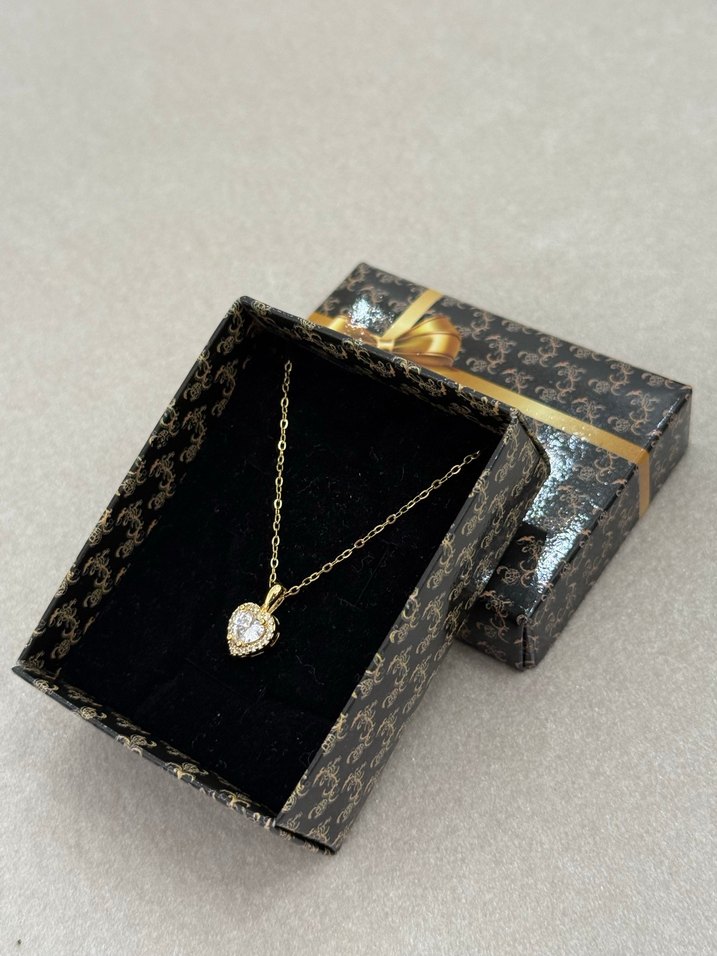Zirkon Taşlı Kalp Kolye Gold