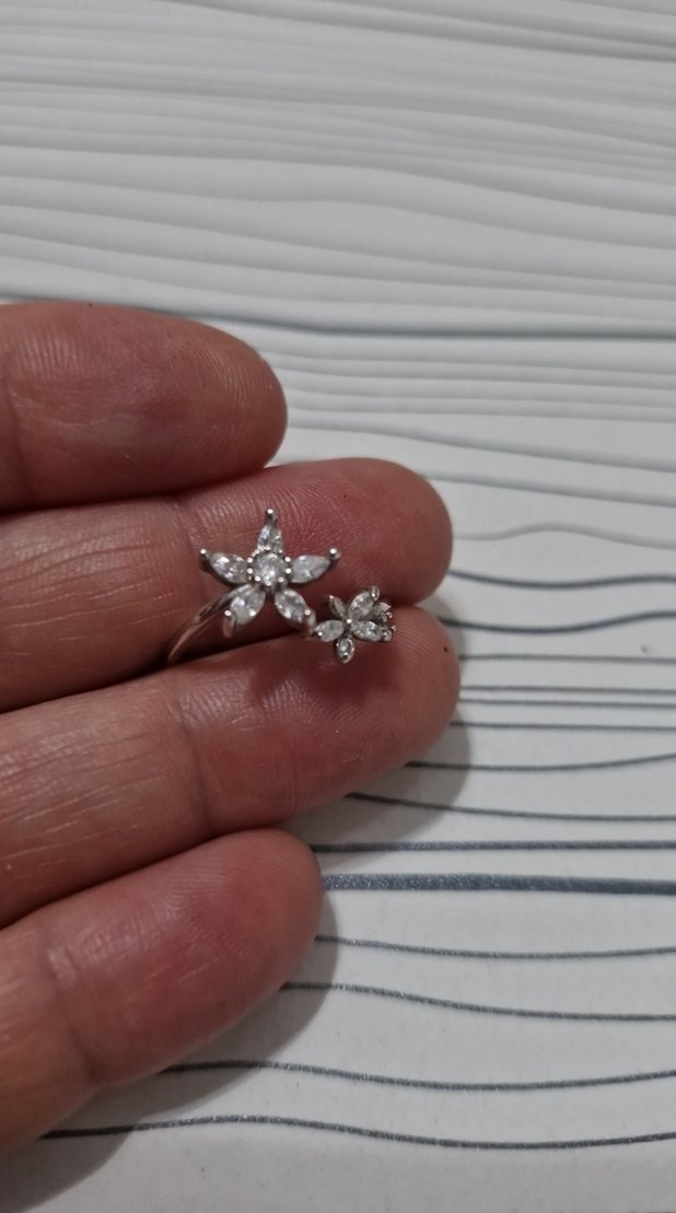 Zirkonyum Taşlı Çiçekli Ayarlanabilir Kadın Yüzük (gümüş değil)