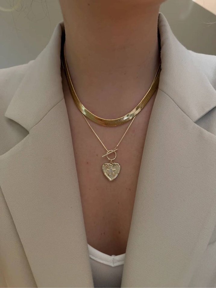 Altın renkli, hafif yılan desenli zincir ve kalp şeklinde kolye ucu ile bohem ve klasik şıklık sunar. Günlük kullanıma uygundur. #çelikküpe #çelikkolye #çelikyüzük #çeliktakı #toptantakı #xupingtakı #xupingküpe #xupingkolye #çelikbileklik #xupingbileklik #halkaküpe #viptakı #kelebekkolye #yıldızkolye #kalpkolye