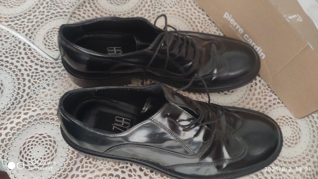 Siyah parlak, lastik tabanlı erkek klasik ayakkabı, desen içermeyen koyu renkli ofis stiline uygundur. Klasik goth tarzı için ideal. 2 - 3 defa kullanıldı. çok rahat kullanımı var. ihtiyaç fazlası