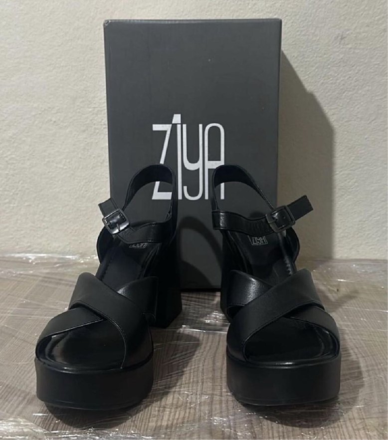 Siyah,deri malzemeden gotik tarz platform topuklu sandaletler, Günlük kullanıma uygun cesur tasarım.