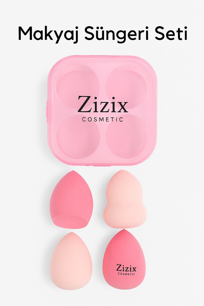Zizix makyaj süngeri seti, farklı şekillerde dört pastel pembe sünger ve uyumlu saklama kutusundan oluşur. Pürüzsüz makyaj için uygundur. Stok durumuna göre renk farklılığı olabilir