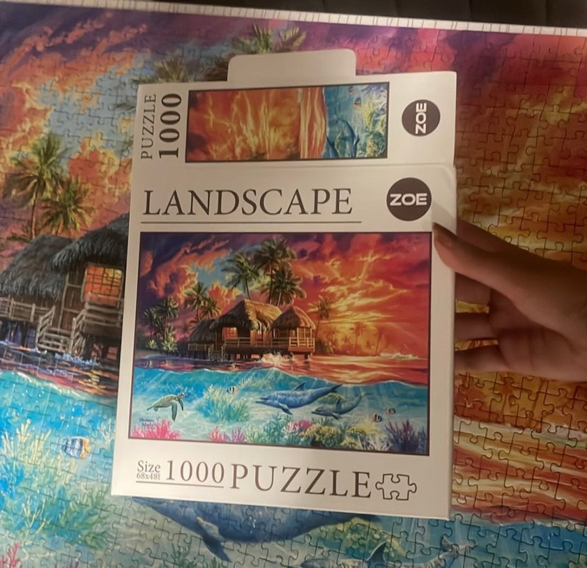 Eksik yok renkleri çok güzel kolay bulunuyor çok renkli olduğu için aşırı zevk alarak yaptım sonucu da çok güzel duruyor Zoe markasına ait 1000 parçalık puzzle, tropikal sahil, palmiye ağaçları ve yunusların yer aldığı canlı bir manzara sunar.