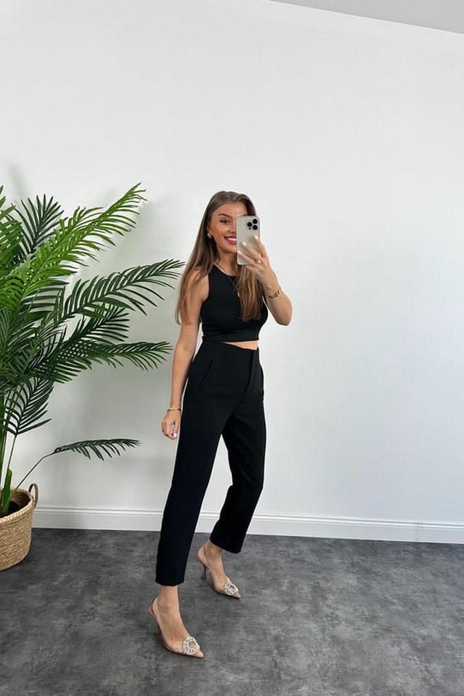 Zra Model Atlas Kumaş Yüksek Bel Flatolu Kumaş Pantolon siyah