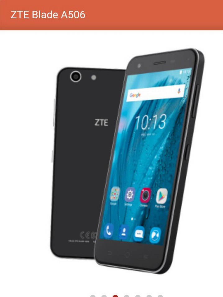 ZTE Blade A506, turkuaz renkli ve koyu tonlu gövdeye sahip. Ön ve arka kameraları bulunan şık Android telefon.