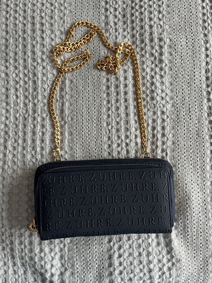 Kabartmalı desen ve altın renkli zincir askıyla zipli kapanış sunar. İhtiyaç fazlası olduğu için satıyorum. Hiç kullanmadım.
