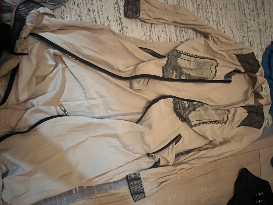 Sentetik kumaştan fermuarlı, bej ve gri tonlarında kadın eldiveni, avant-garde sokak modasına uygun şık tasarım.