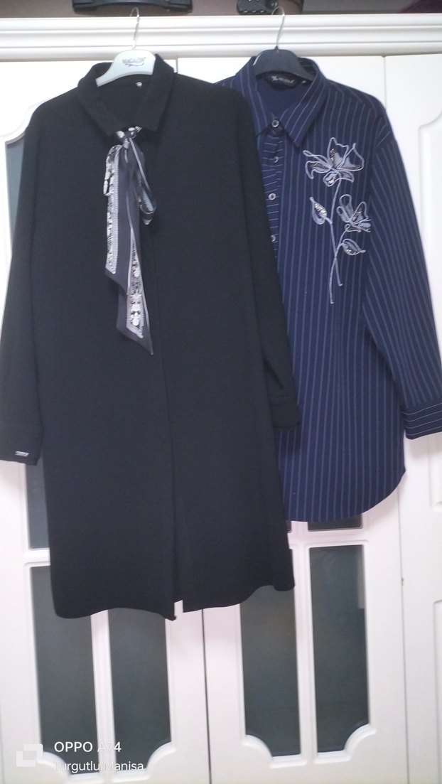 Zühre fularlı tunik ve Alvina Nakışlı Lacivert Uzun Kollu Tunik.Nakışlı desenli, notalı yaka ve uzun kollu lacivert tunik. Sentetik kumaş, drapeli ve rahat kesimlidir, ofis kullanımı için uygundur. ✨
