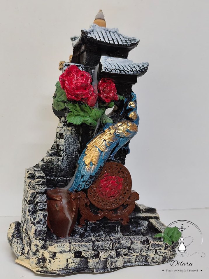 Zümrüdüanka ve Aşk İle Yanan Ejderha Geri Akış Tütsülük Ürün El Yapımı betondur, Ölçüleri 19 cm boy 13 cm en dir